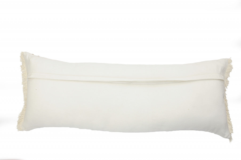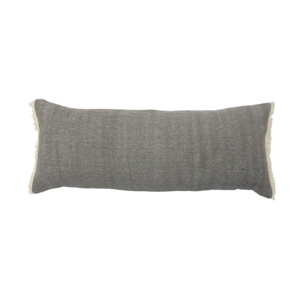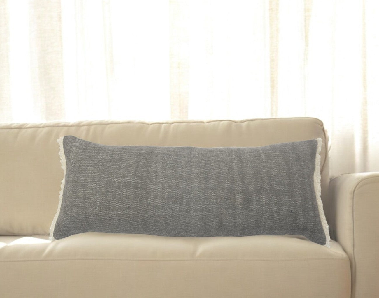 14" X 36" Gray Cotton Throw Pillow with Fringe