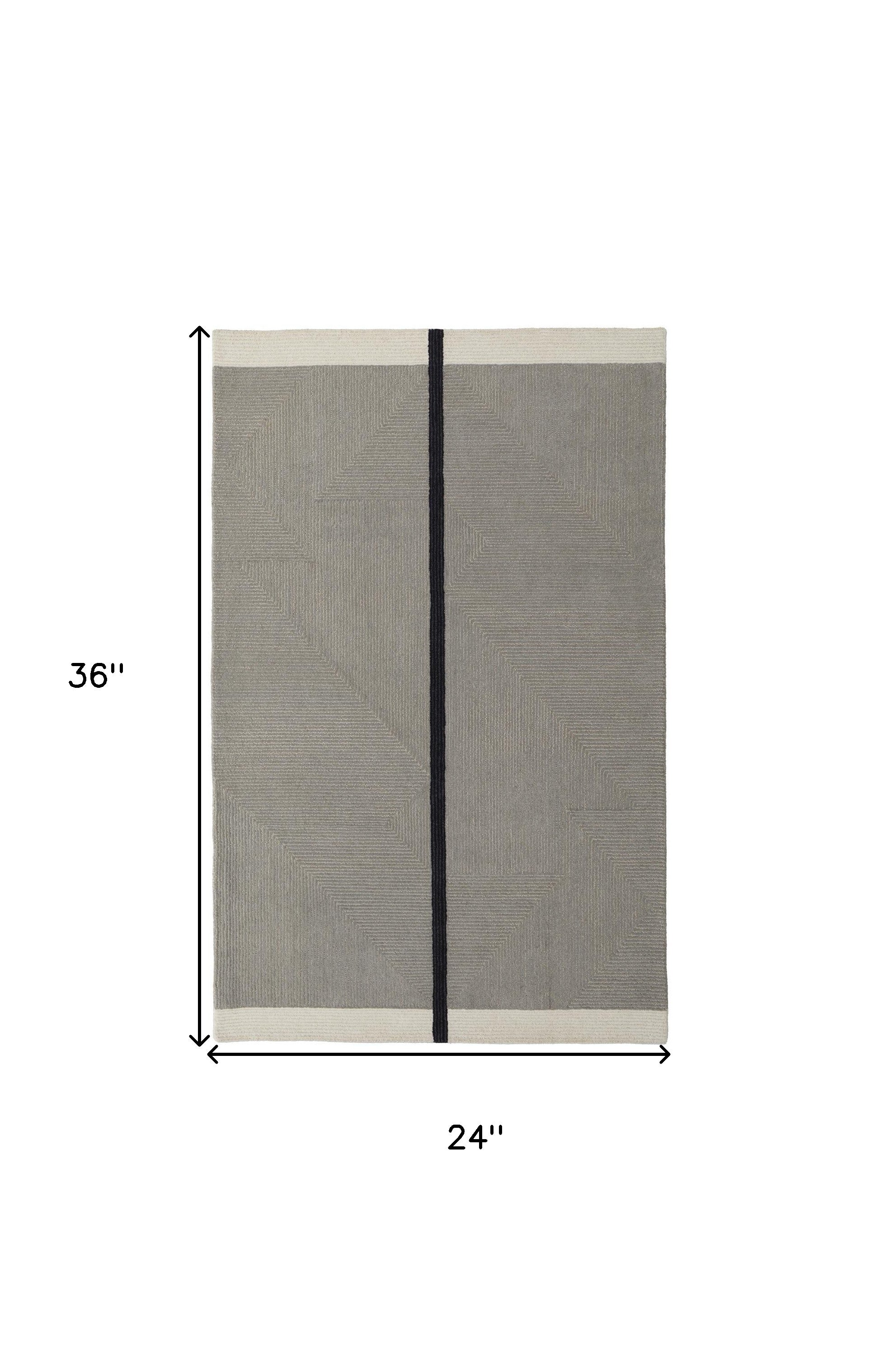 2' X 3' Black Gray And Taupe Abstract Geometric Hand Tufted Area Rug