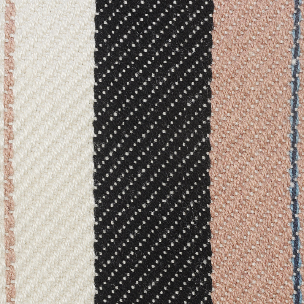 24" X 24" White Zippered Striped Indoor Outdoor Throw Pillow