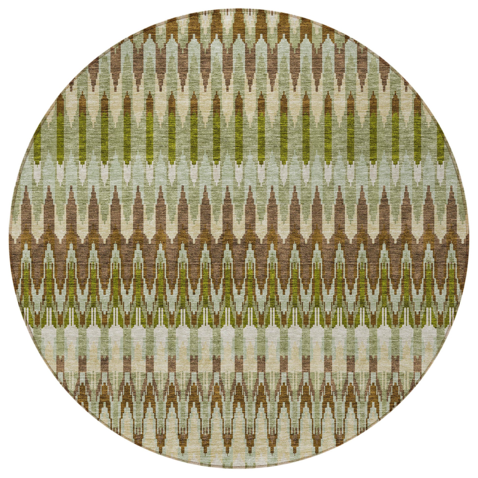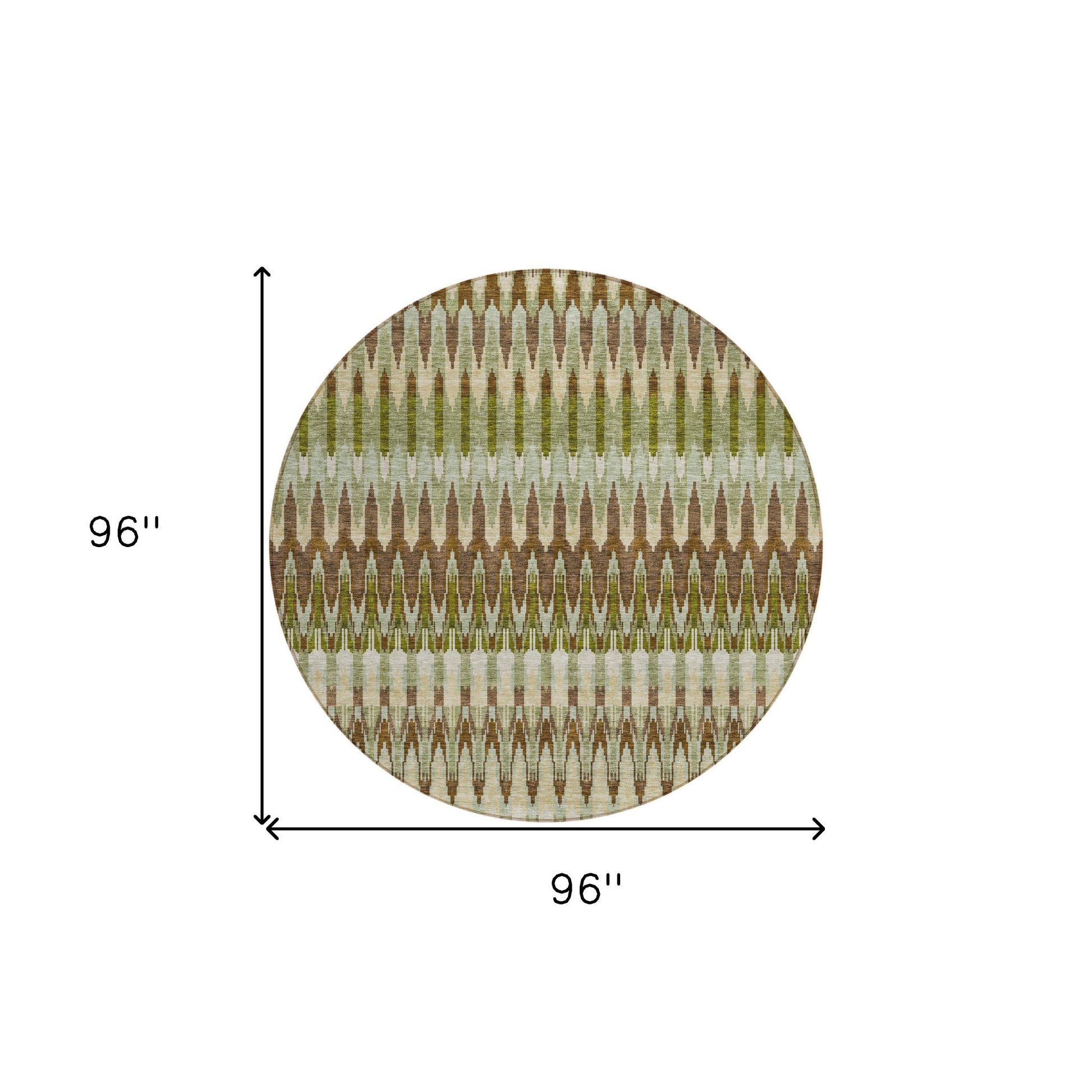 8' Artichoke Green And Brown Round Southwestern Washable Indoor Outdoor Area Rug