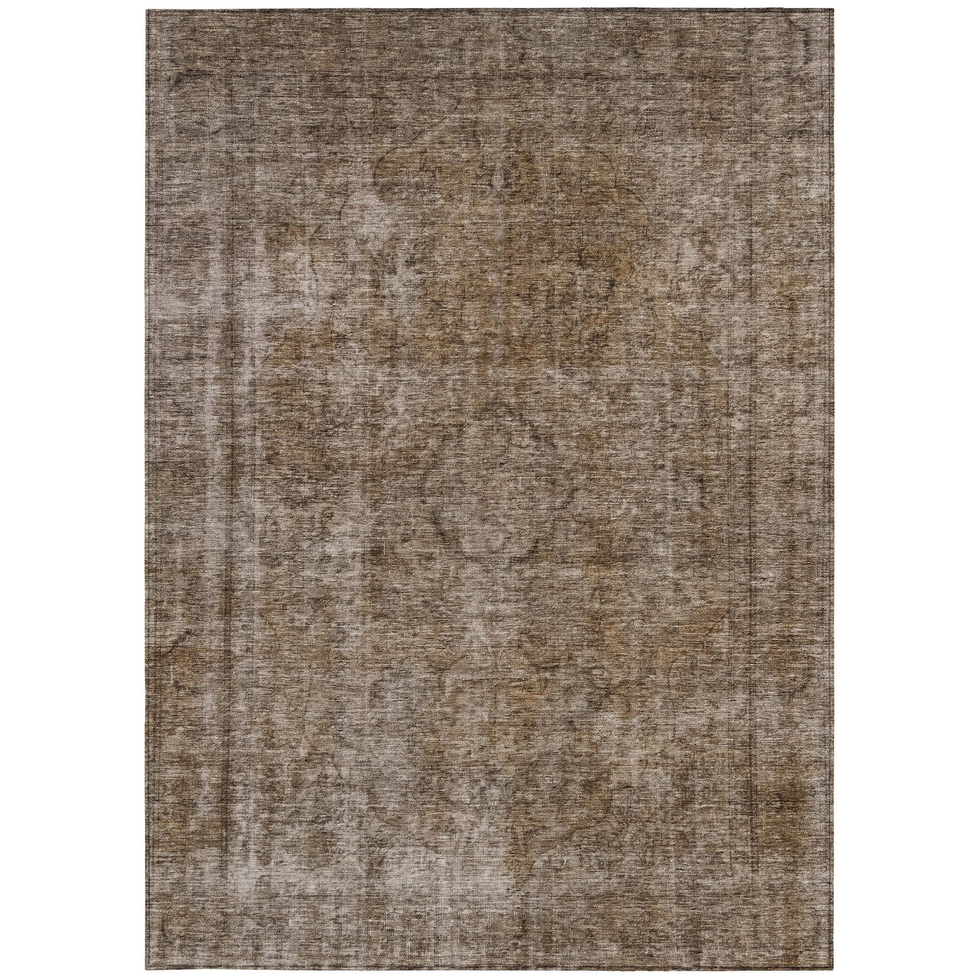 9' X 12' Brown And Beige Medallion Washable Indoor Outdoor Area Rug