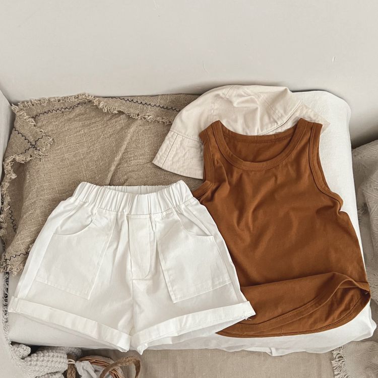 Baby Boy And Girl Solid Color Denim Shorts With Pockets