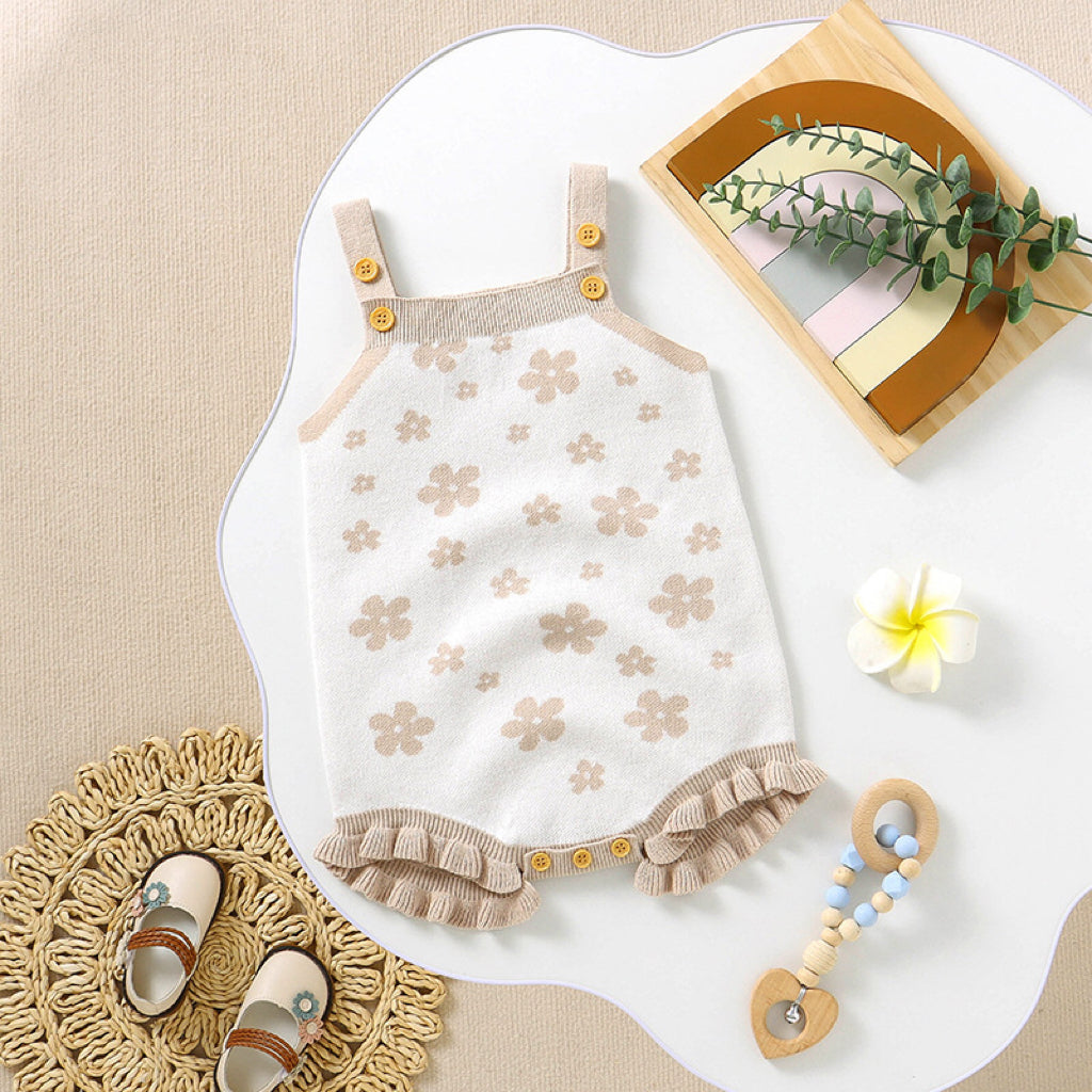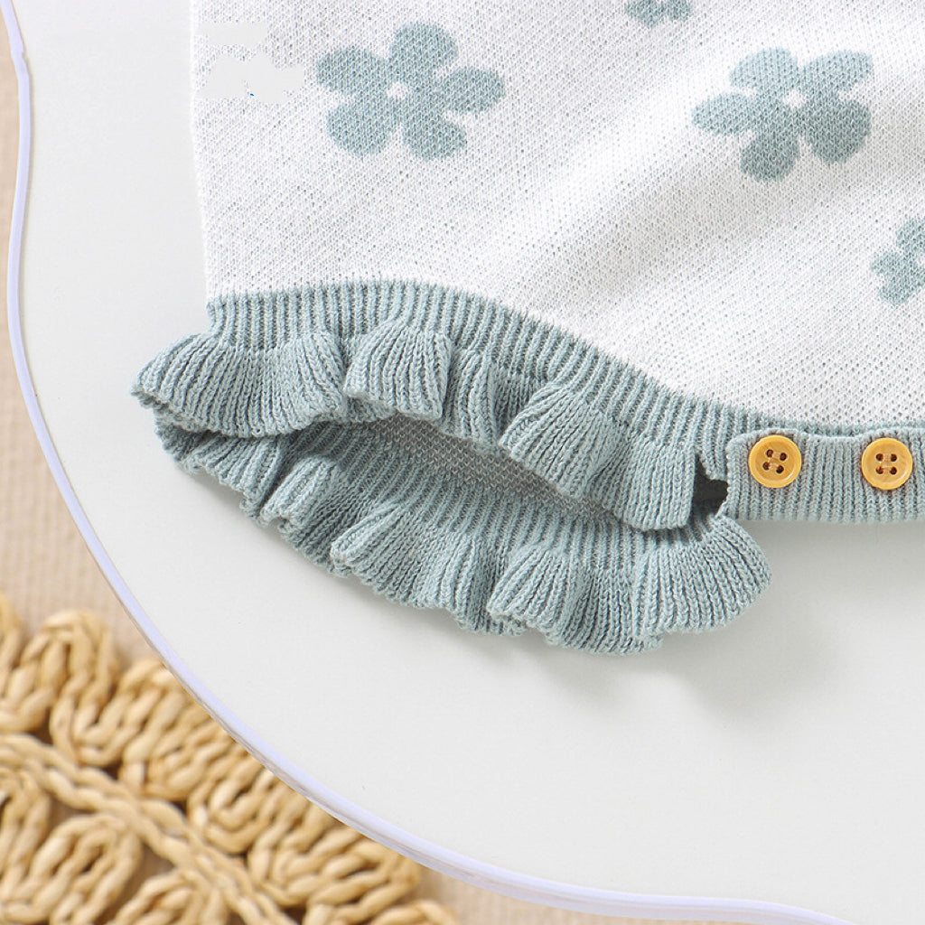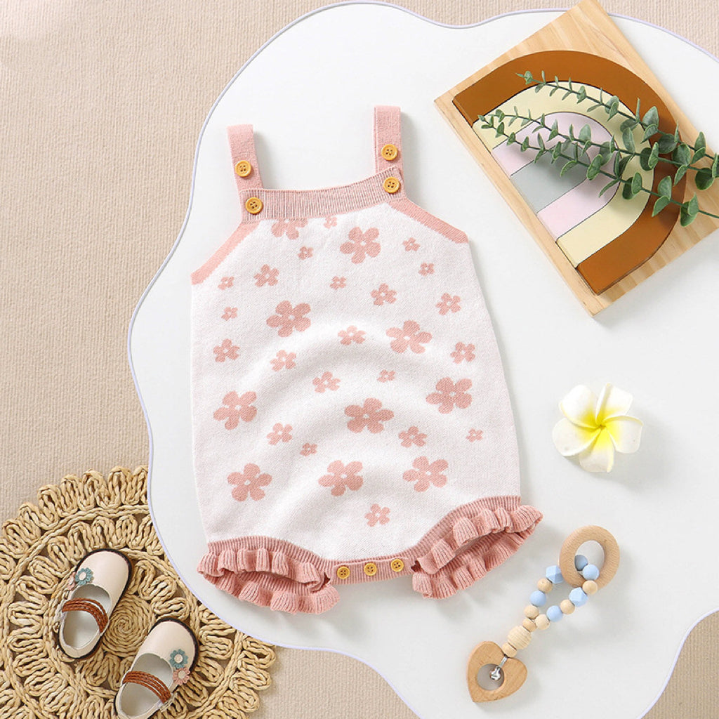 Baby Floral Pattern Ruffle Design Sling Knitted Onesies