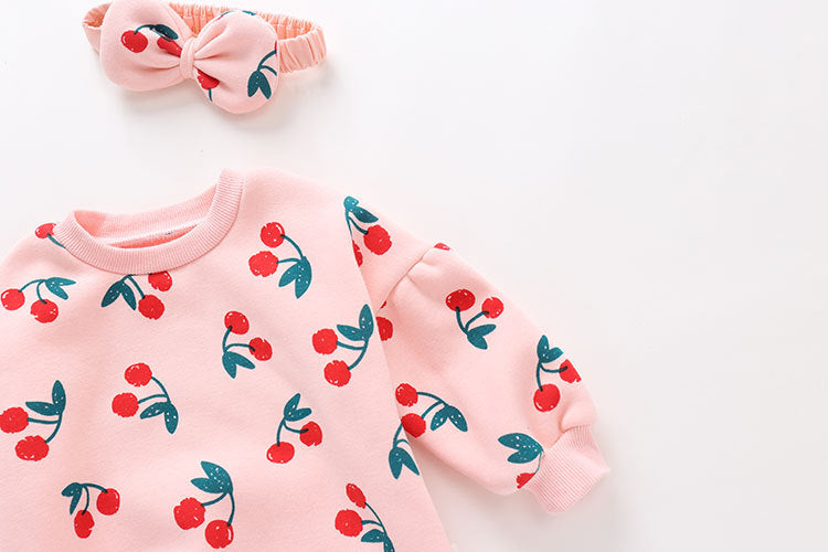 🍒 Allover Cherry Pattern: Sweet and playful print that brings extra charm to her outfit.
