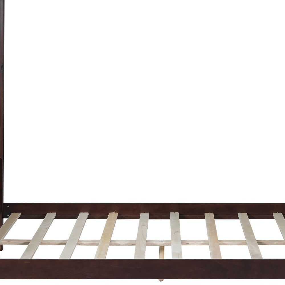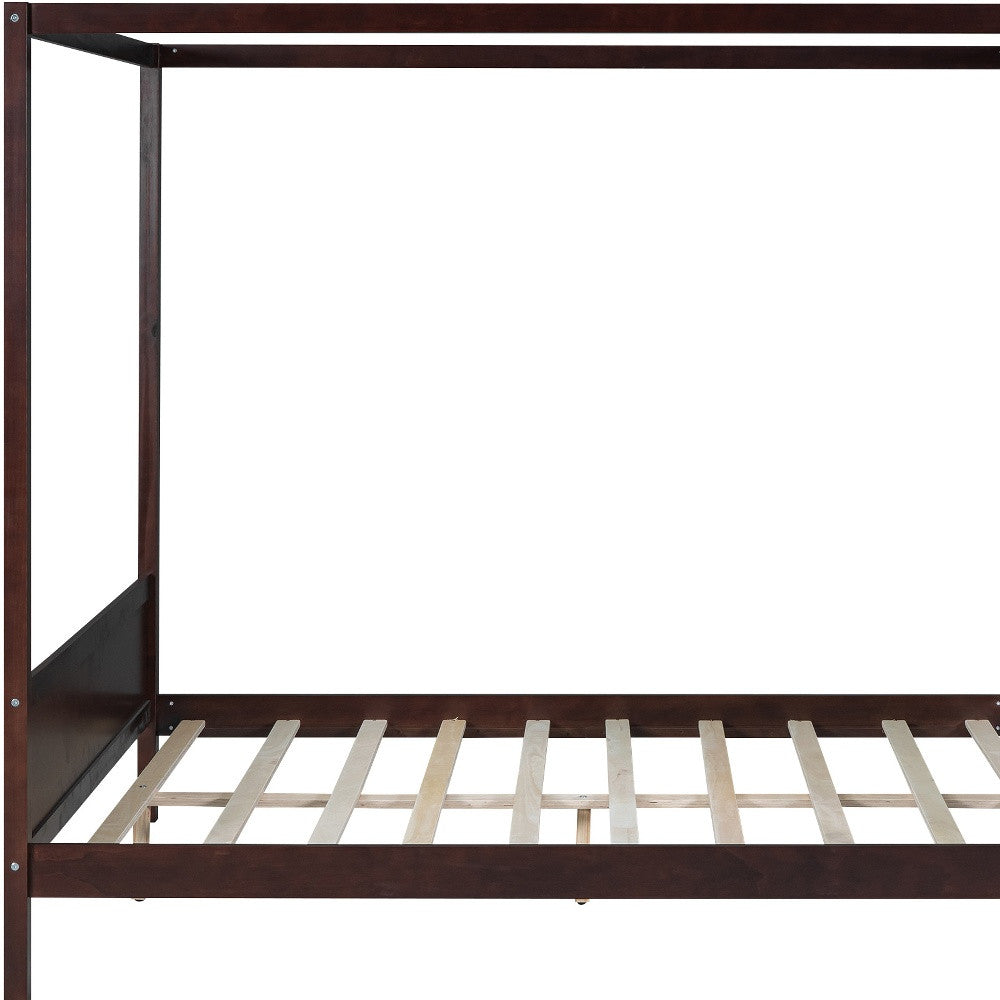 Espresso Inlaid Panels Wood Queen Canopy Bed