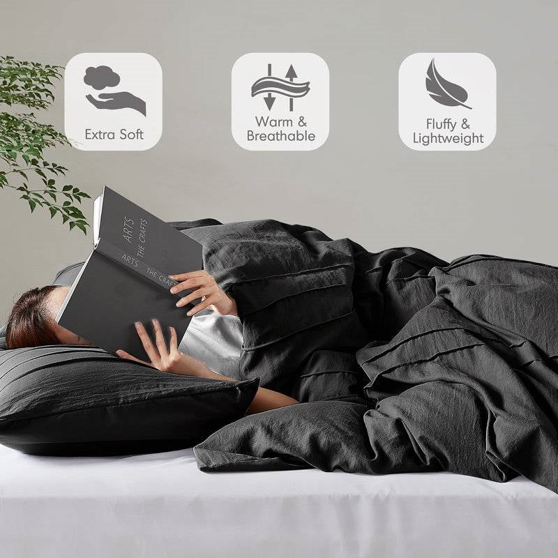 King size Pre-Washed Pleated Microfiber Comforter Set in Black