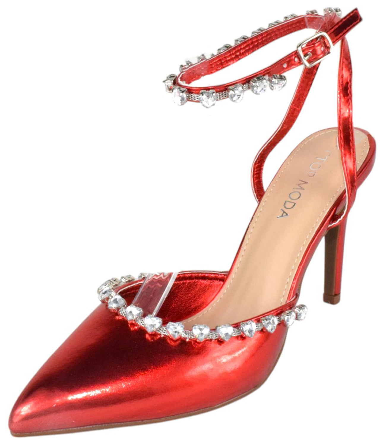 Rock your style with PARSON-3 Top MODA! These stiletto heels feature a pointed-toe design, ankle strap for support, and bling rhinestone embellishments for a touch of glam. Perfect for any occasion, these shoes will elevate your outfit and make you stand out in a crowd.