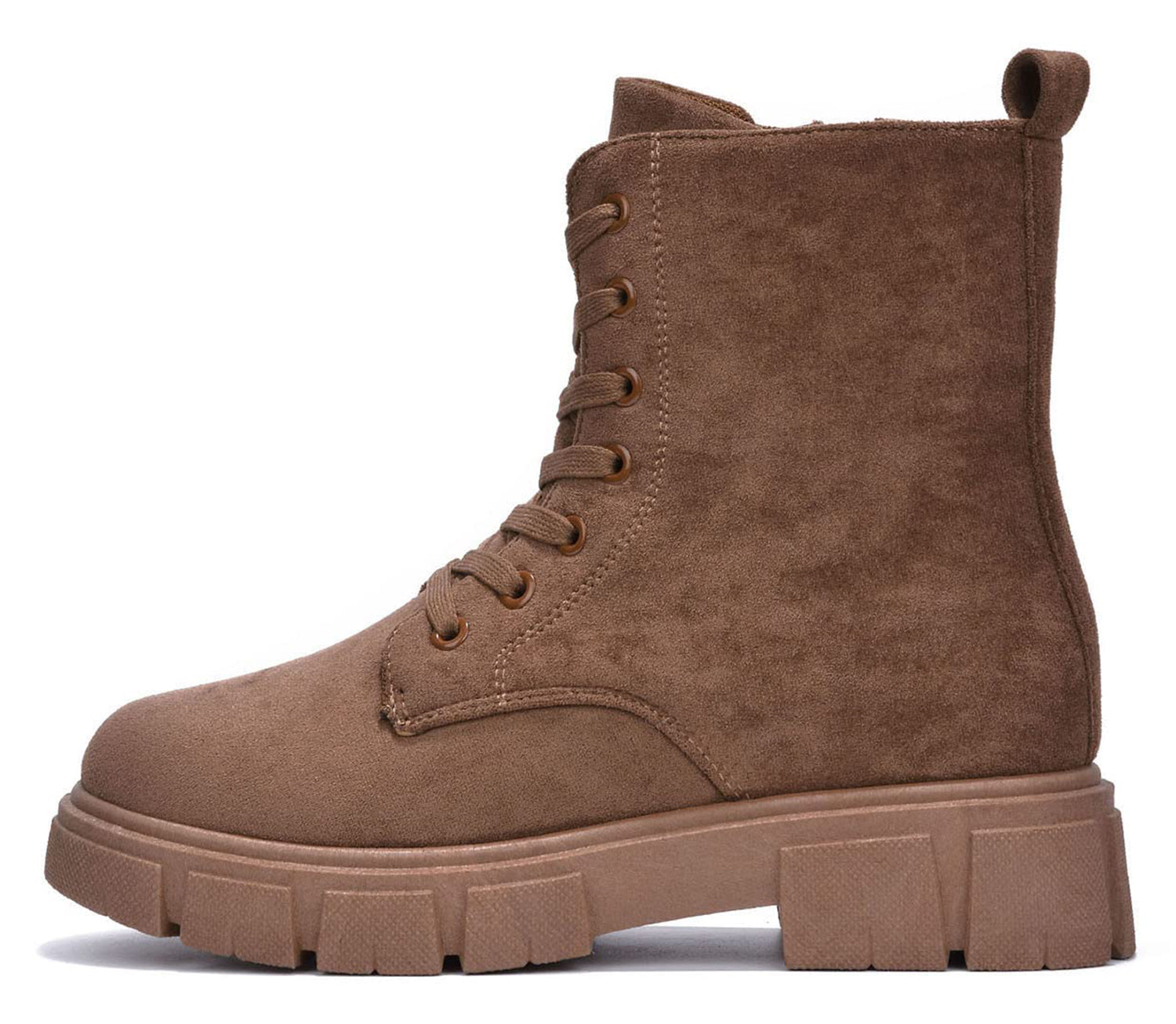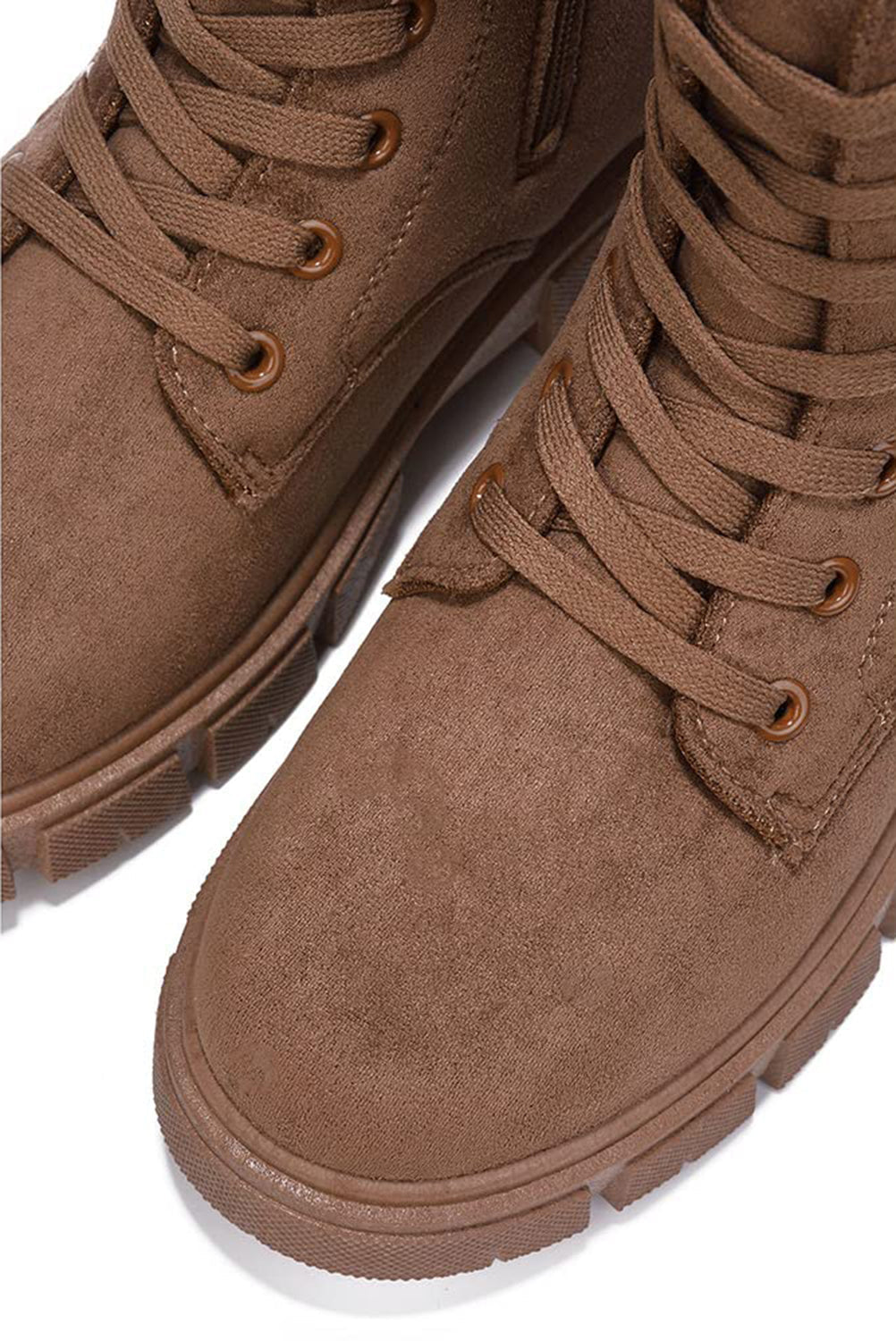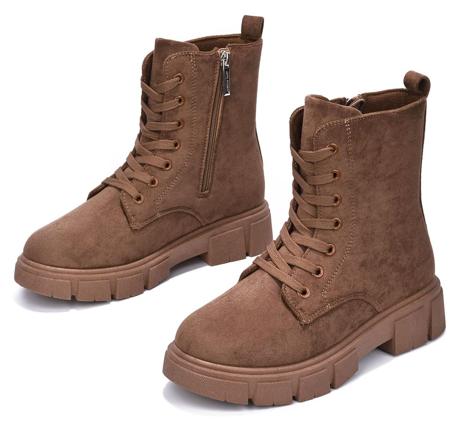 • Cape Robbin Women Ankle Combat Boots Lug Platform Sole Booties Lace Up Round Toe Side Zipper Suede SHANDA