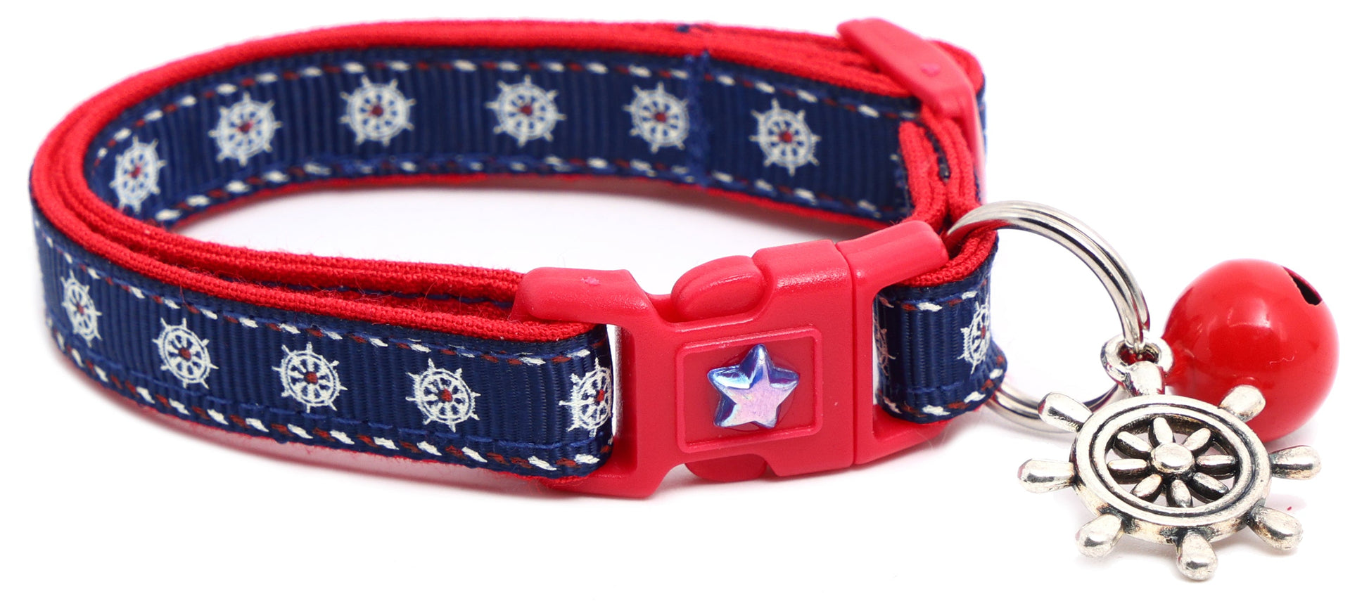 Reinforced cotton makes a great collar material because it is soft, light, as well as sturdy. It is also machine washable which all pet owners know is a "must have!". We use breakaway clips on our cat collars for your kitty's safety. If you insist on a non-breakaway collar I can make one custom for you if you contact me. The bell can easily be removed if you prefer.