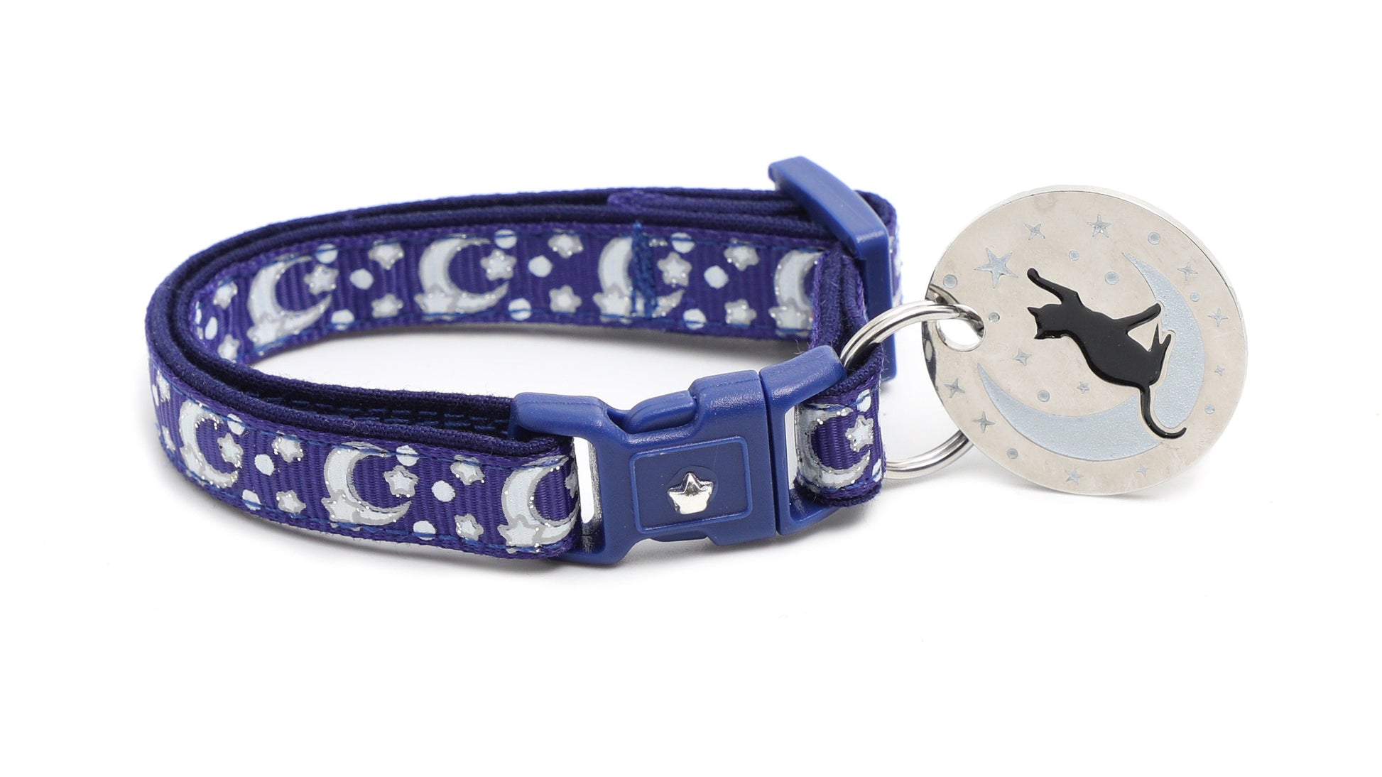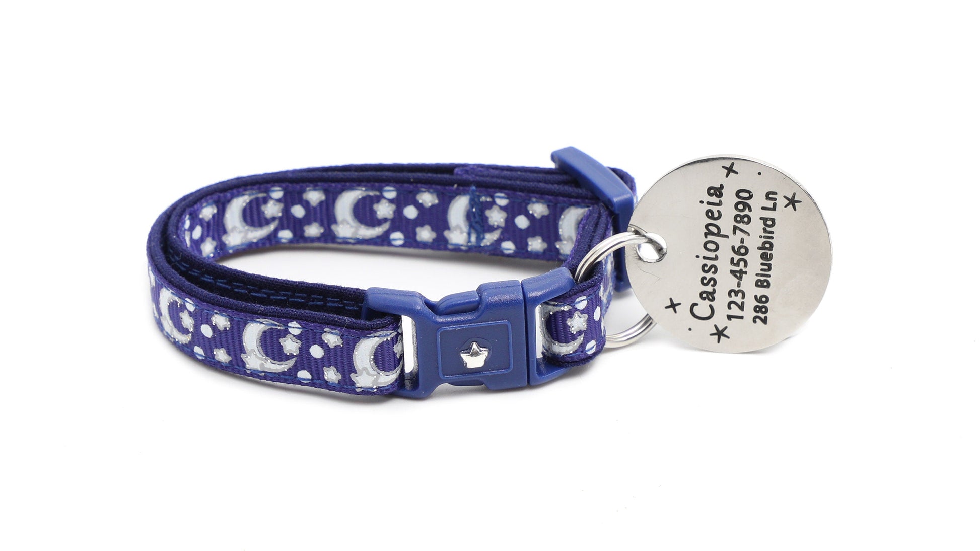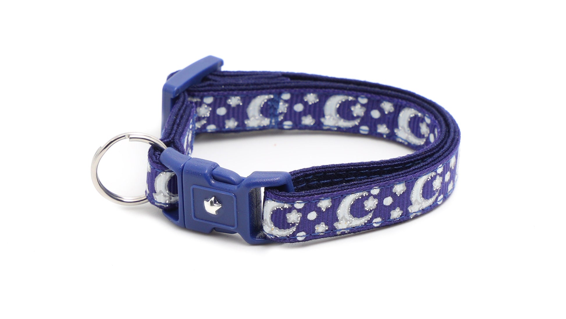 Silver Moons and Stars on Navy Blue Cat Collar
