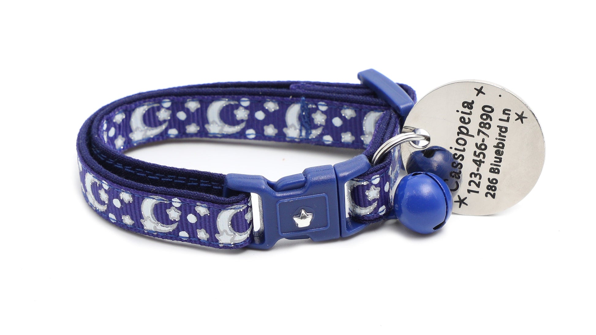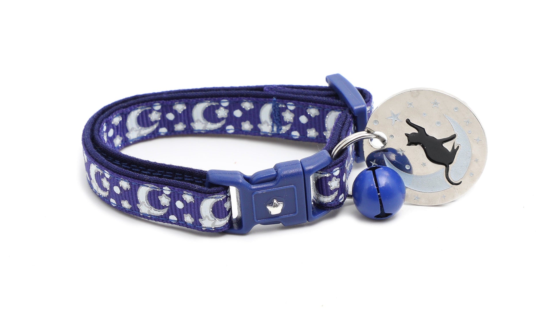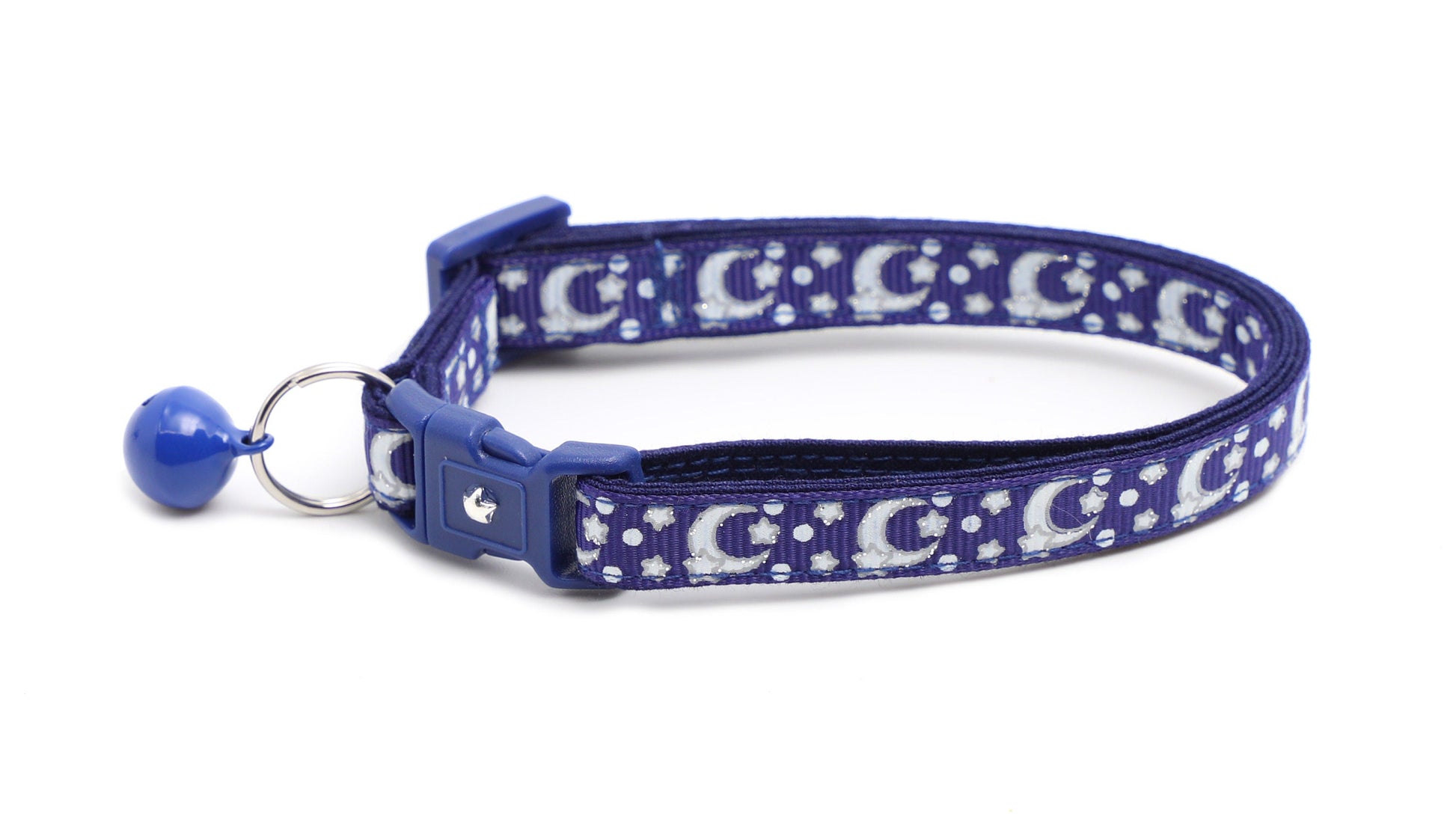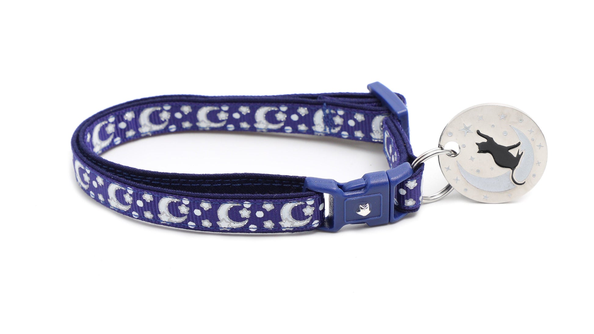 Silver Moons and Stars on Navy Blue Cat Collar