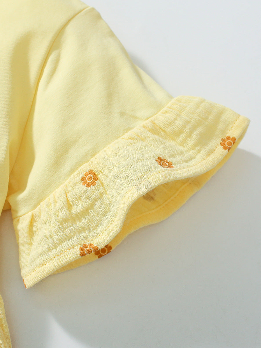 Bring sunshine to playtime with this charming 2-piece set featuring a cheerful yellow polka dot dress and matching pants. Perfect for warm days, this lightweight outfit keeps your little one comfy and free to explore. The playful design adds a pop of fun to any adventure, making it a delightful choice for your baby girl’s summer wardrobe.