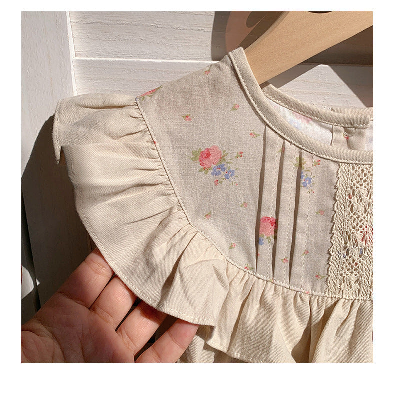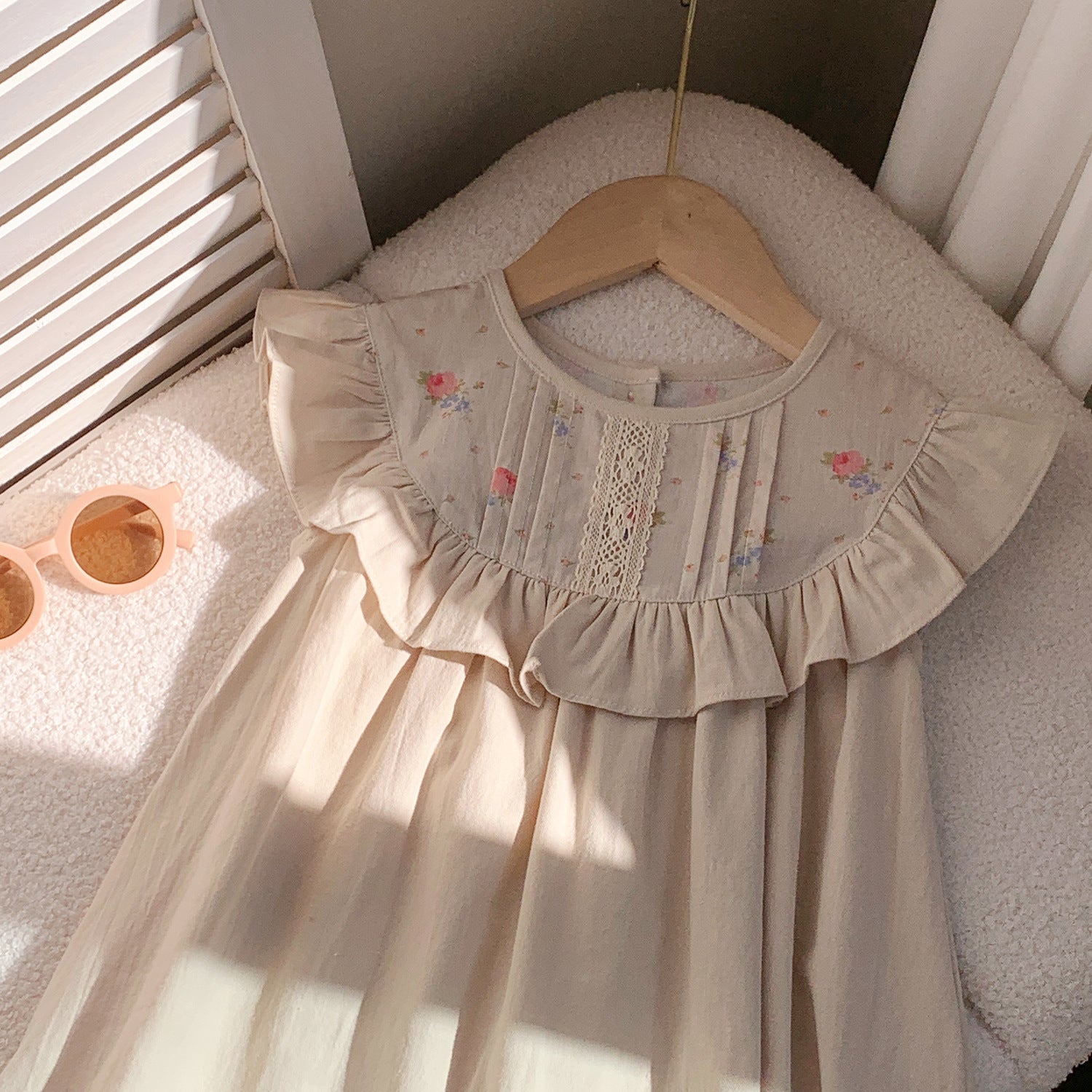 This elegant sleeveless brown dress features a delicate floral pattern, perfect for summer days. Designed for baby girls, it combines comfort with style, allowing freedom of movement while keeping your little one cool. Its timeless design makes it an ideal choice for casual outings or special occasions.