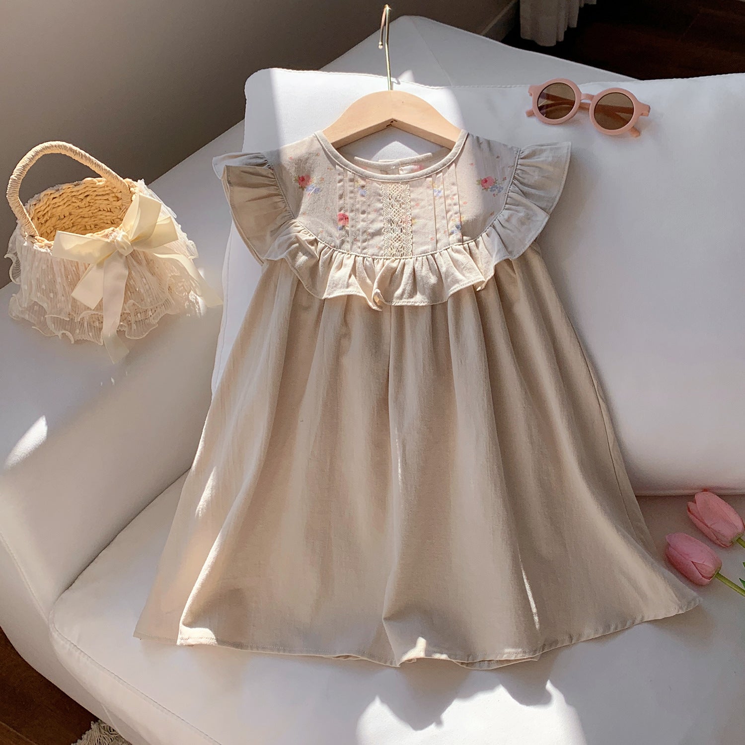 Summer Baby Kids Girls Sleeveless Floral Pattern Printed Brown Dress