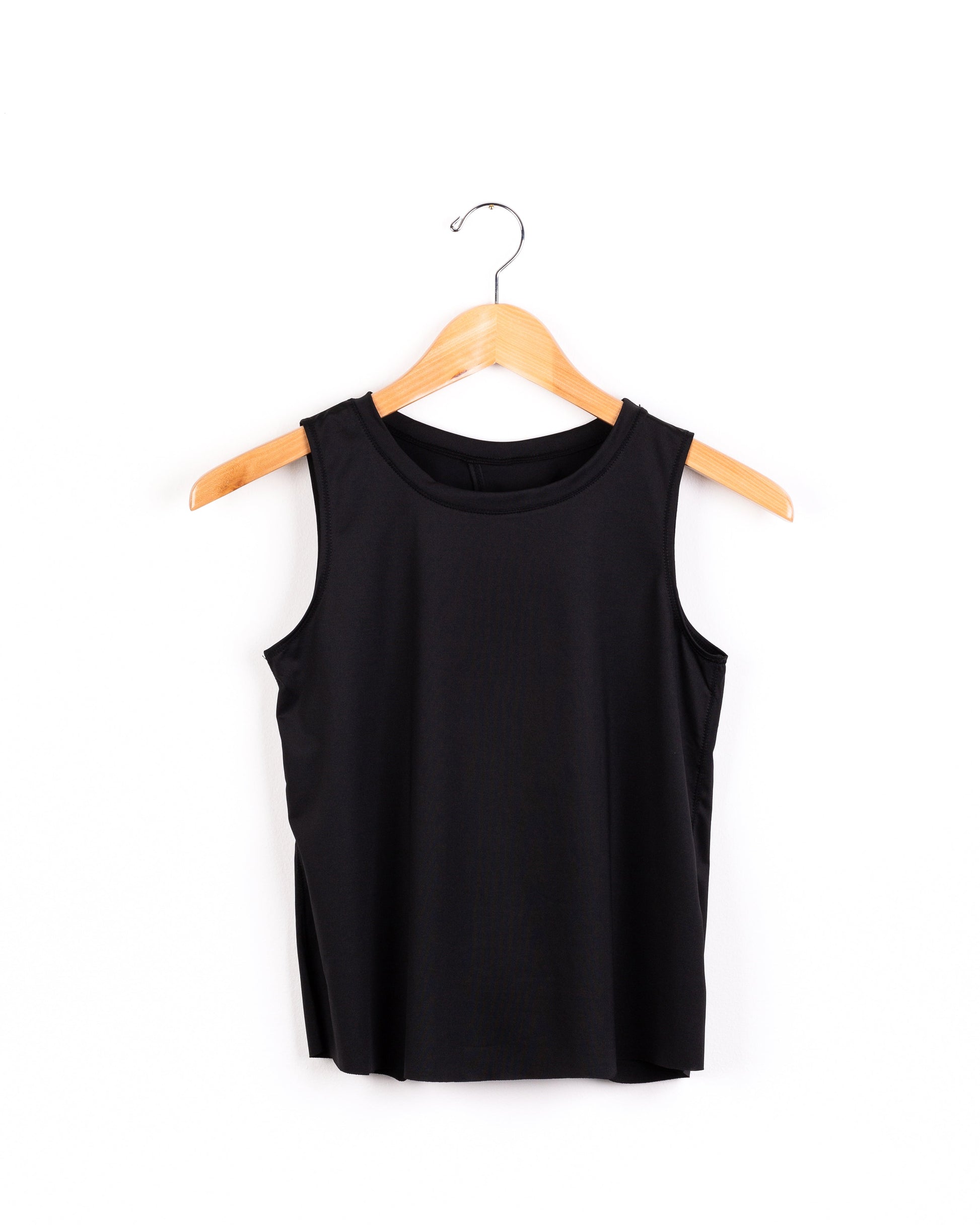 The loose silhouette tank top with a subtle open back is something to get wild about. The black hue is the perfect way to build on your basics foundation but trust us- this style is anything but basic. Sleeveless cut with deep armhole slots. Round neckline.