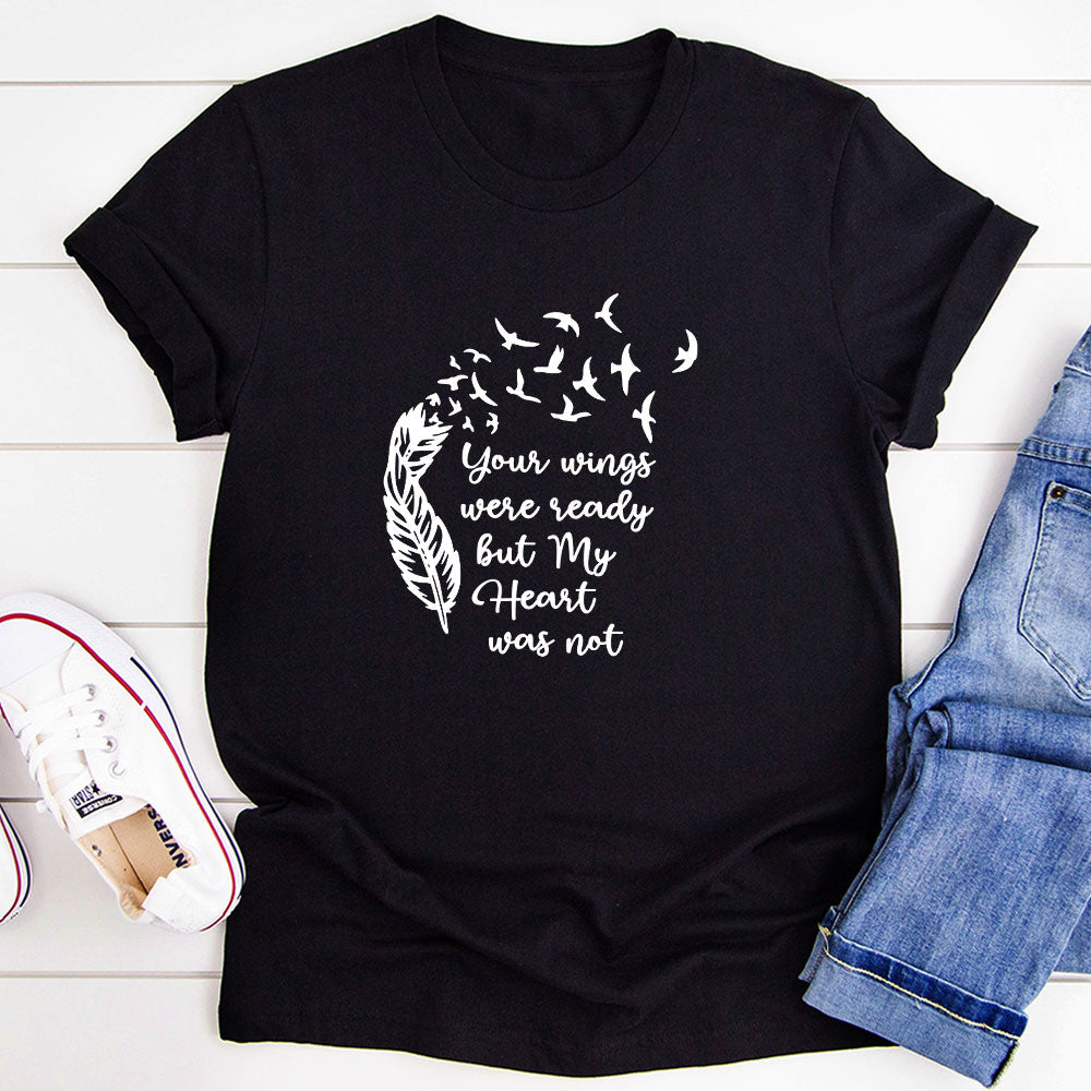 Introducing Your Wings Were Ready But My Heart Was Not T-Shirt - Unleash your creativity with this USA-made digitally printed tee, featuring captivating designs. Made with 100% soft and durable cotton for a trendy and unparalleled look. Express your style with this tee.